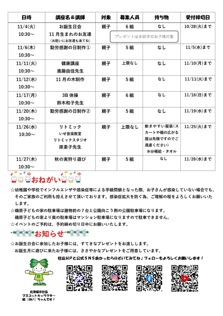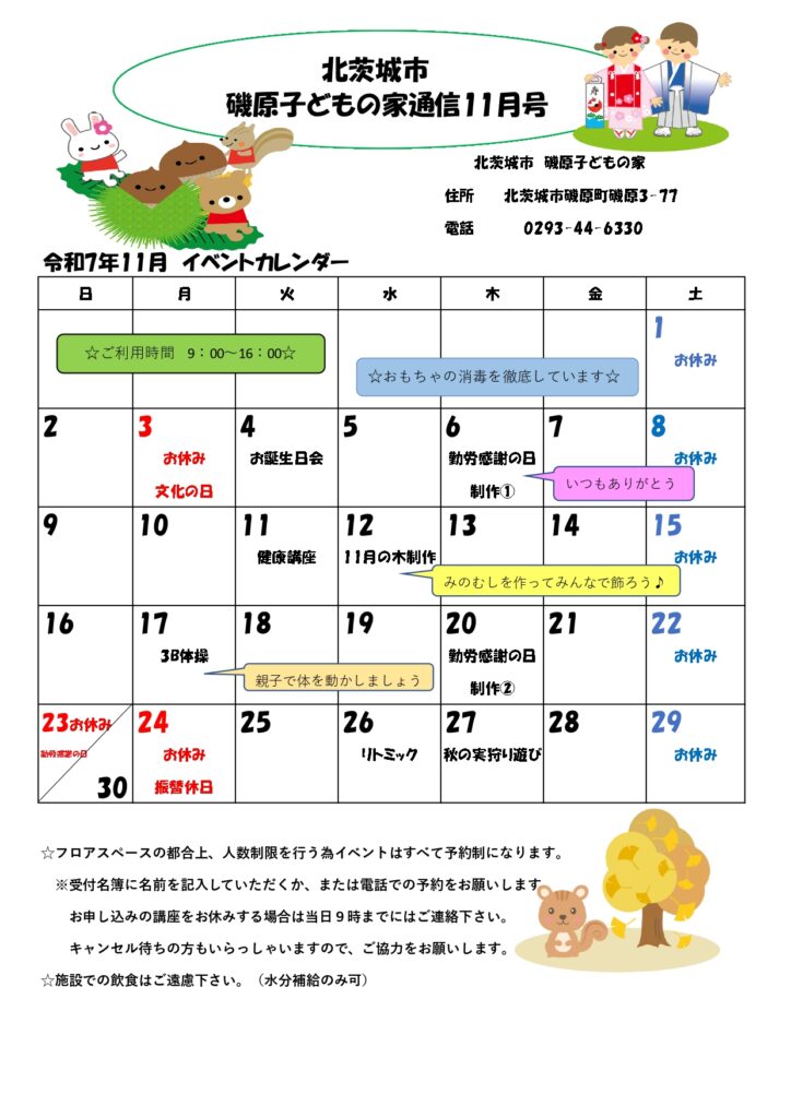 磯原子どもの家「11月の予定」について