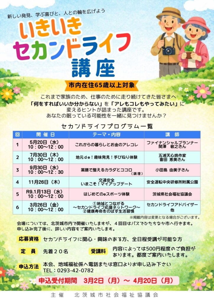 来年度より「いきいきセカンドライフ講座」を開催いたします。