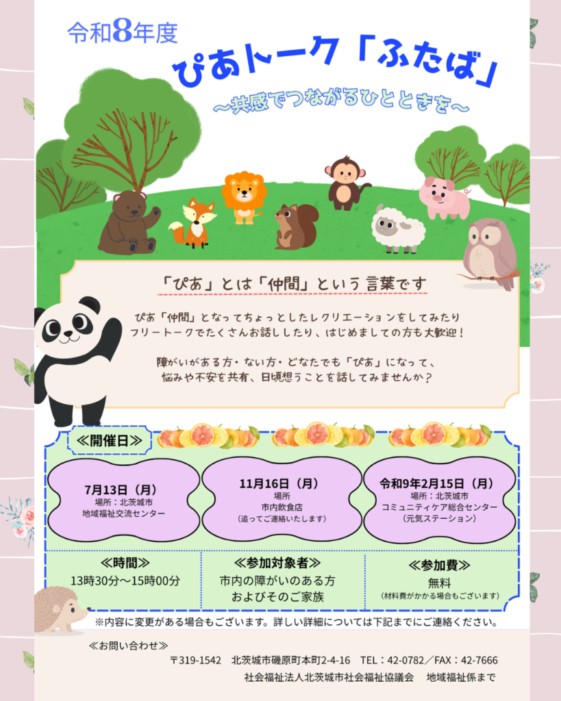 気になる!行ってみたい“ぴあ”(仲間)になってみたい方、北茨城市社会福祉協議会までご連絡ください。